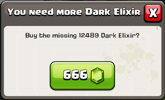 Seriously? I need 666 more gems to buy DARK Elixir? :rolleyes: