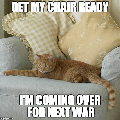 I'm in for a war. Rain is keeping chat warm & comfy! Great place to be in & especially on weekends