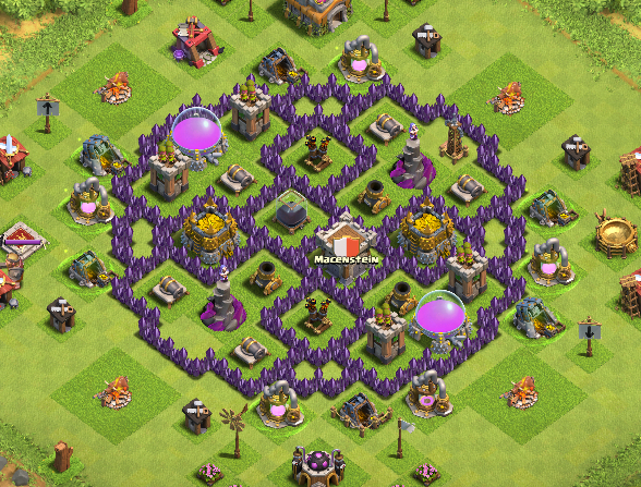 In my opinion the best TH7 base layout. Used it all during my TH7 and have to say goodbye as my TH finishes in one day. Never been three starred and never lost more than one gold storage. Truly fantastic layout.