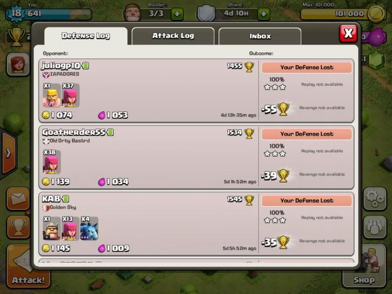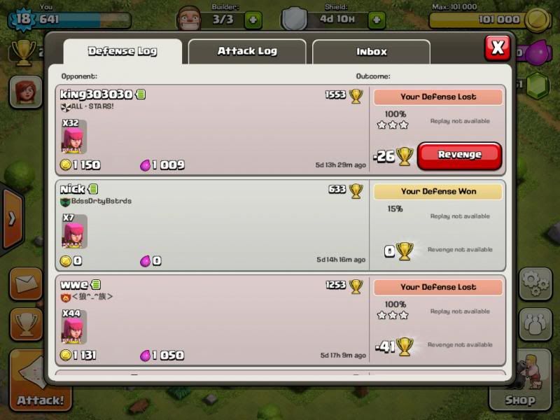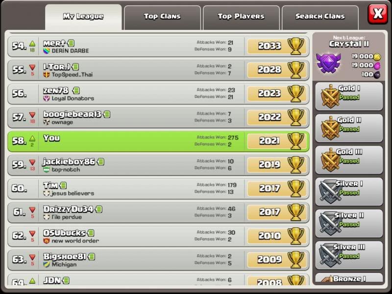 My journey up the trophy chain was not as difficult as you might think. I did it by destroying town halls that were positioned outside of village walls. I started my quest coincidentally at the start of a season, so you can see my attack/defense log in the pictures. It only took me 5 days playing a few hours a night. Trophies that i won were anywhere between 3-11 but averaged 7-10. Revenges were the biggest set back during my climb as you can see in the pictures. I cant figure out the trophy system and how it is calculated because there were a lot of scary town hall 10s that i could only with 10 trophies and lose 32. Doesnt make sense considering my attacking army and their defense. The hardest push was rolling through the 1900s. I needed to gem the 1 and 2 day shields after i reached 1950 trophies in order to not be set back again. I became really good at sniffing out a "baited" Town Hall that was loaded with bombs and hidden teslas but stuck in a corner away from the base. I won some and lost some of those. Very frustrating.