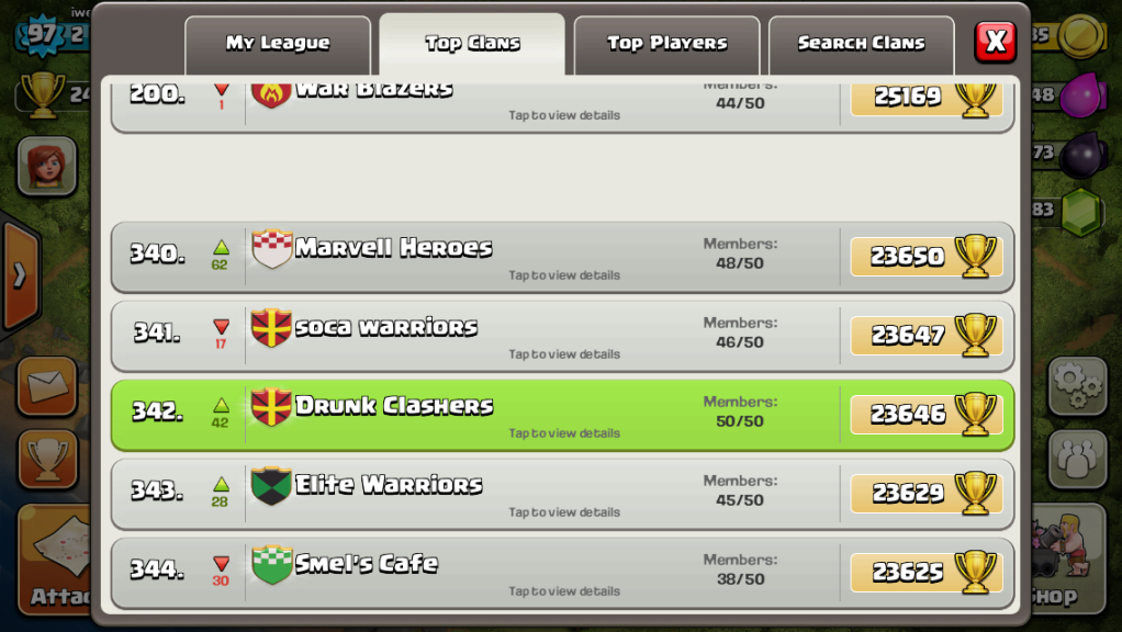 We have a few new openings in Drunk Clashers looking to be filled today. We are a mostly farming clan where you can farm at any level but we do run a trophy push once every 4-6 weeks or so to challenge ourselves and see how high we can climb. We are an adult clan with active, funny chat and great donations. Come check us out!