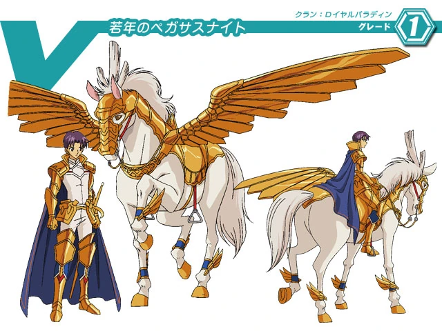 Description: "Knights galloping through the skies... Shine forth, brave sword and defenders of the weak! The future is with them"