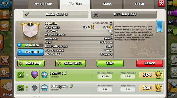 Please JOIN US! Apollo #G0QJ0G9Q just request by "Scooby Doo where are you".. This clan is serious for war.. I'm a specialise 3 stars th10 and I uses my knowledge to retain my players.. I teach th9 player 3 stars war that I uses when I was th9.. Hopefully you don't mind this humble clan! We really serious in war and activeness..