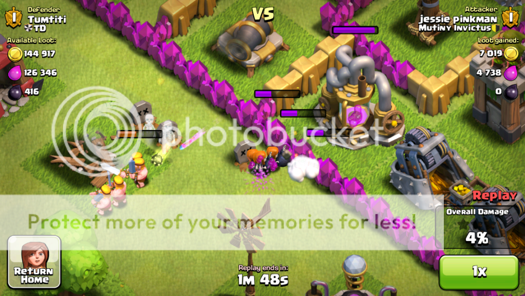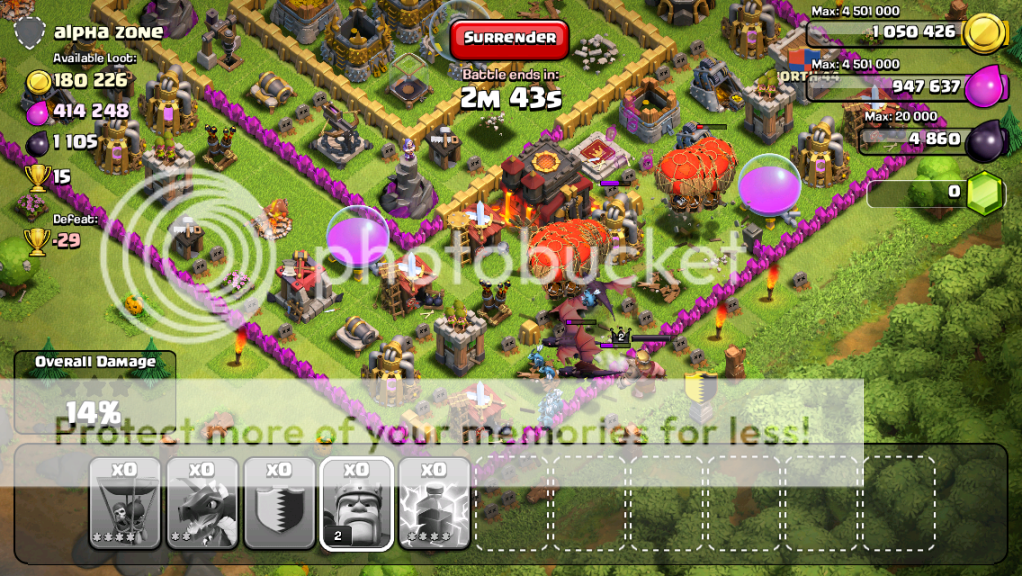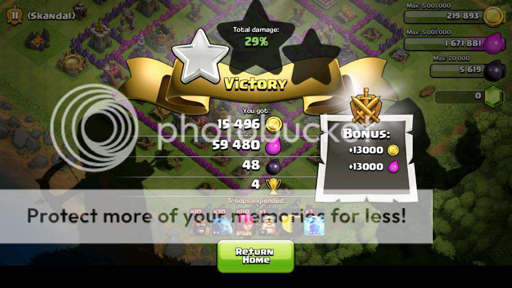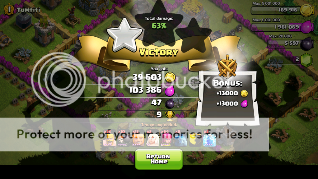 Note: I found gold 1 to be pretty barren, once I got towards Crystal I've found the loot much better. Possibly just the weekly cycle of poor loot mid-week, but typically I do find it easier to find good offers once I've got the Crystal badge (and the better loot bonus helps, too - sometimes you can TH snipe, but generally nearly all of my "farming" raids I do actualy aim for 50%).