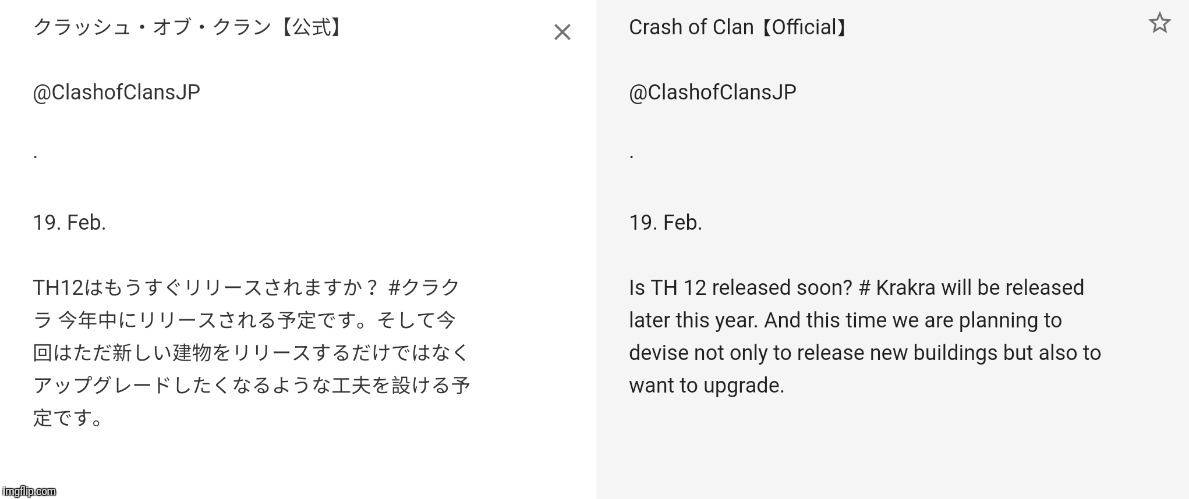 jp speak l as r and r as l 😂. just kidding. its an issue from google translate. you can visit coc jp here and scroll down to februar 19.