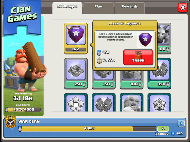 Clan games challenge - get two stars from Legend League Opponent - not working/rewarding.