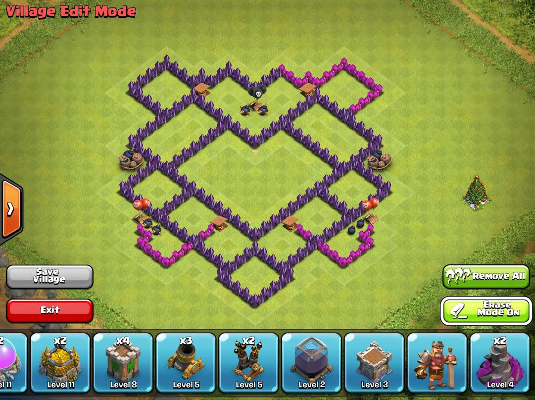 The point of this thread is to help everyone make a great Town Hall 7 Farming Base.V1.0 - It does a good job but the core is weak and there are a couple of bad junctions. In spite of that raiders rarely get loot, but if they make it to the core it can be bad.