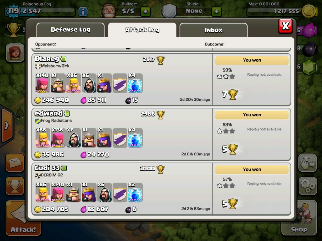 Hey everyone:) Just wanted to share my TH9 journey to Champ League. It started for me by learning high lvl game play in Forum Elite II, and ended shortly after the EPIC Sky9 event. I reached 3,213 🏆 using 100% barch. I love the army as you can battle quickly, and affordably. The result was that I was able to push while making awesome resources. I highly recommend this army as one to learn at any TH level.