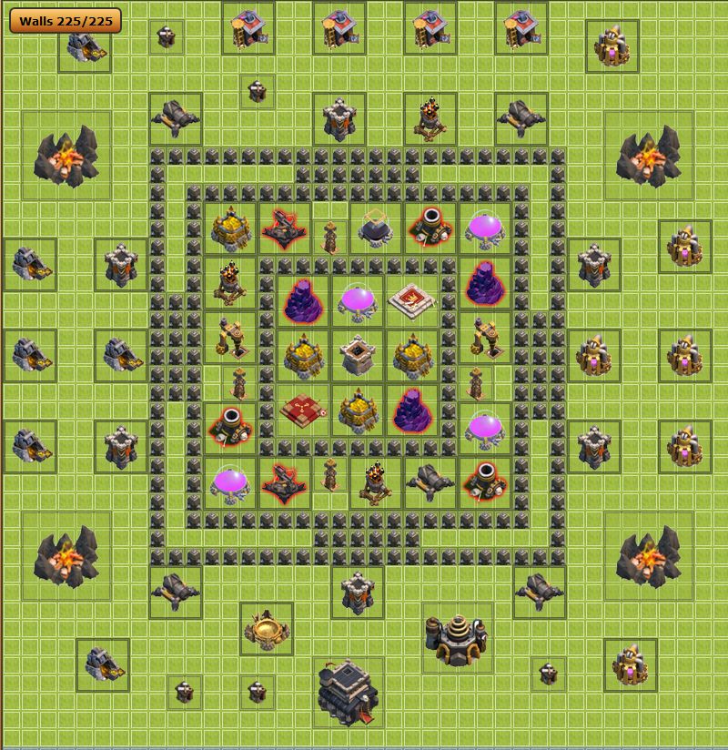 For the corners, you should probably use the remaining of your current spike walls to correct more pockets to confuse the wbs. I think you have enough walls to surround your mortars and archer towers creating another layer for them to potentially have to blast through.