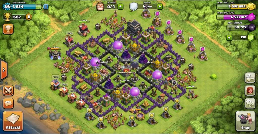 Back to Basic design, simple funnel for Giants, Traps are located outside typical of most farming bases, big bombs are used only when necessary for the DE, gold miners are located inside the wall, widen Xbow coverage, DE located in the middle with 2 empty spaces to make it "invisible" for most troops (except AQ and Wiz), tesla providing coverage for inner and other walls, Some defenses located outside for Giants and Hog time wasters and separate a large group into smaller ones.....etc etc