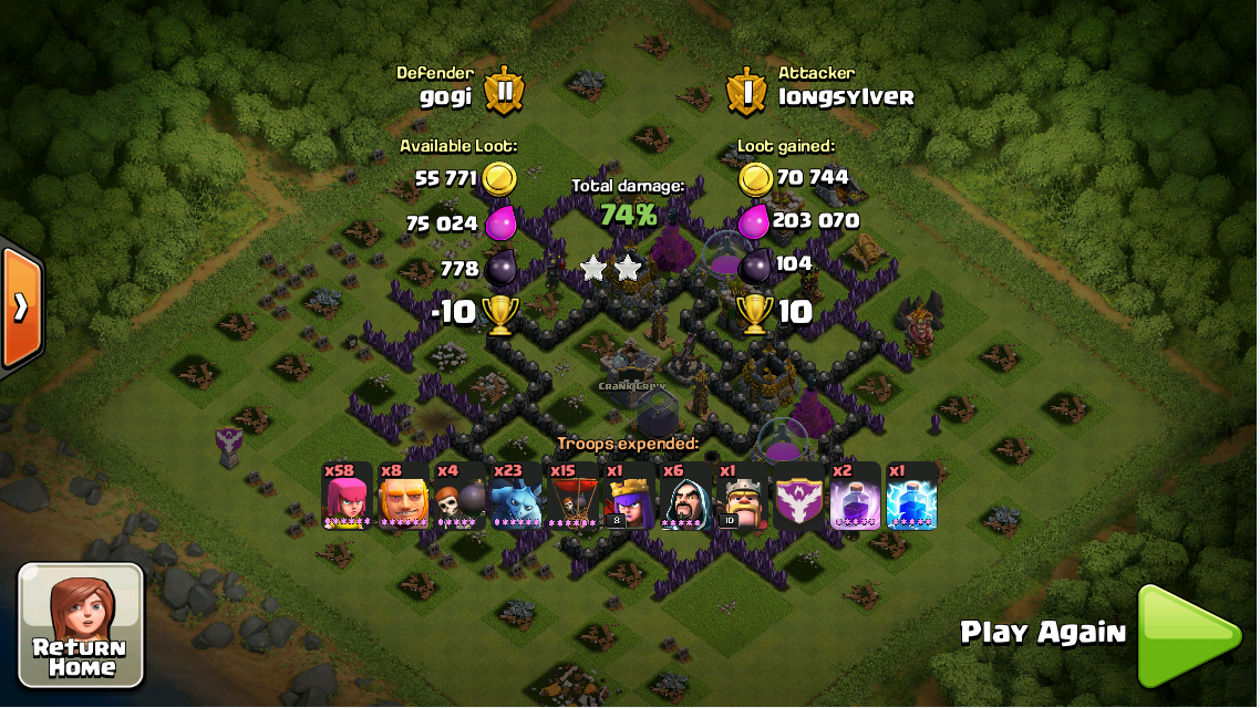 Well balloons took half of my base. :( Had mortar, air defense and archer tower on upgrade. But still didn't got dark elixir! :D