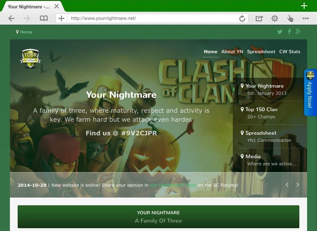 If you you don't have a clan to call home your luck just took a turn up today as Your Nightmare2 and Your Nightmare has immediate room available!