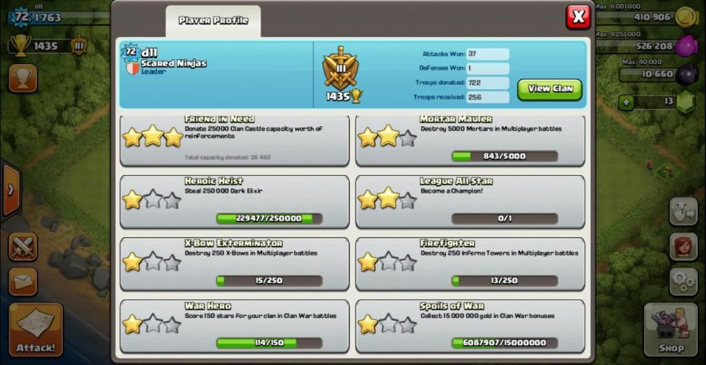In Game Stats (Gold Grab, Elixir Escapade, Sweet Victory!, Friend in Need, Heroic Heist, War Hero and Spoils of War) :