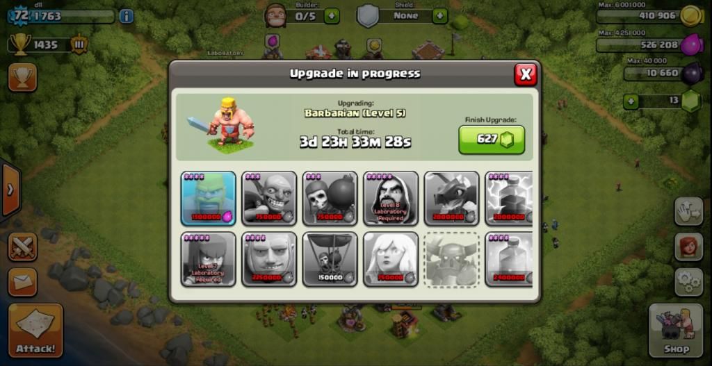 Current Troop and Spells Progress :
