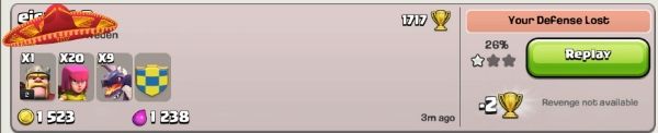 Up to the day it was taken down, the core walls were NEVER breached. Three gold containers were lost due archer queens, total. Two months and well under million gold lost was a success in my books. Most gold lost went to lightning rains, which did occur on weekly basis, taking max of 70k gold a go. Trophy range 1100 - 1700. 95% of the time having more than a million gold in containers.