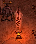 The appearance of Lightning Rod could be similar to that shown in the survival game "Dont Starve" and occupy a very small, like a trap of jumping space, so it can be located anywhere in the village who want to defend