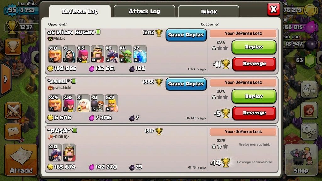 The weakness that I dont like is air raids from the south. 25 maxed balloons with reach into the core unless you replace wizards with air defense. I keep my trophys low so maxed balloon attacks are far and few between. Right now all 4 of my air defenses are being upgraded to theyve been cleaning me up lately lol. Tell me what you think guys! I didnt think much of it as i really had nothing to compare it too, but after visiting this site and seeing other peoples defense logs, with higher level defenses getting higher % then mine I thought I'd share.
