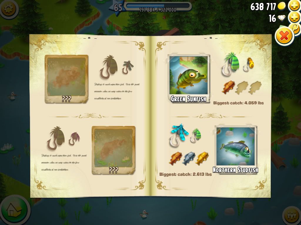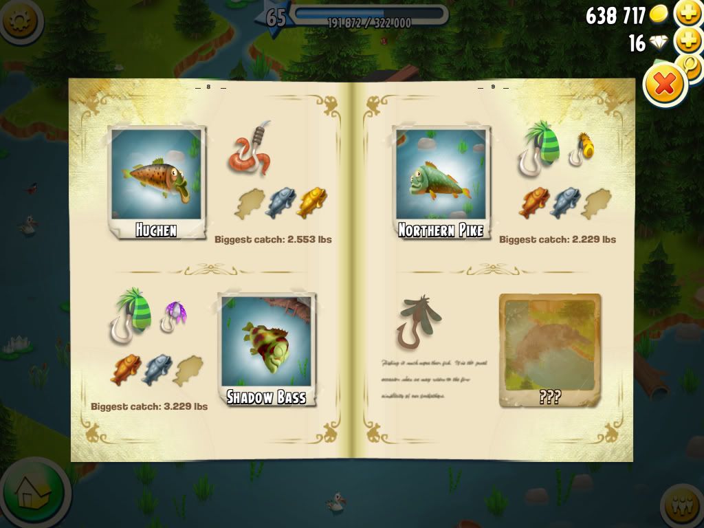 It seems to be workable for the moment. Let's just hope there will still be some competition in it when all the golden ones have been caught. Seems like the last 3 unknown fishes are pretty hard to catch, though :) I'm cherring for your missus to get those! Seems like she's putting alot of work into it. I still have the last 3 areas to expand. Those deeds sure are hard to find.. !