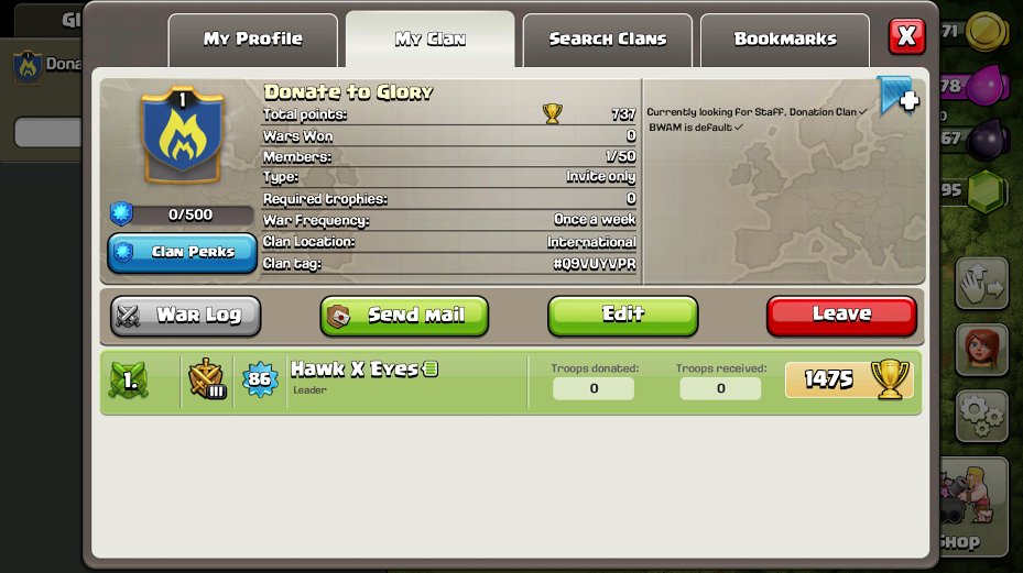 Donate to Glory!Hi, I'm Zhen and my IGN is Hawk x Eyes. I have recently started a donation clan. I am looking for staff who will help and run the clan alongside with me. Requirements is that you have to be:-
