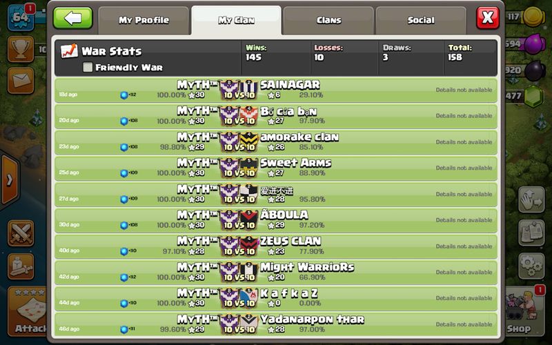 War Record: 145 Wins - 10 Losses - 3 Draws [Total: 158 Wars]