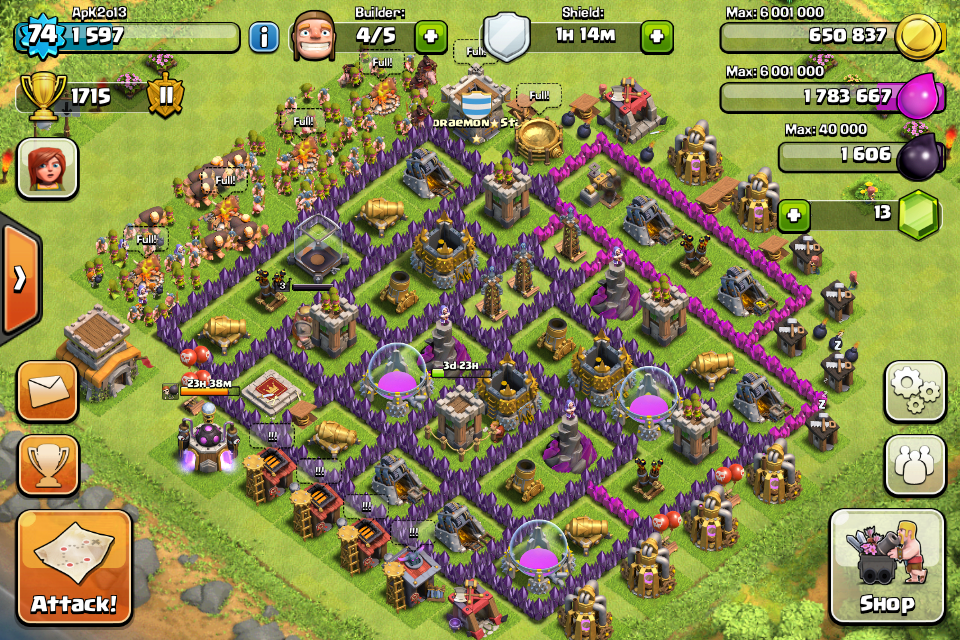 Comment: your base looks like it should be mid 60s instead of lvl 74, you must donate a lot of troops![]()