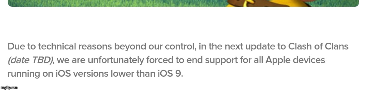 is no ios under 9 confirmed for new update? if so that is worthy of op