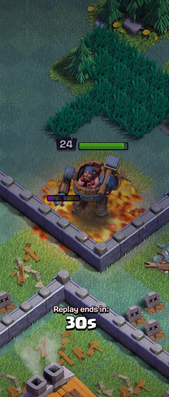 This is a L24 BM attacking my village, staying inside the molten lava from the Launcher, but taking next to no damage while hitting walls!