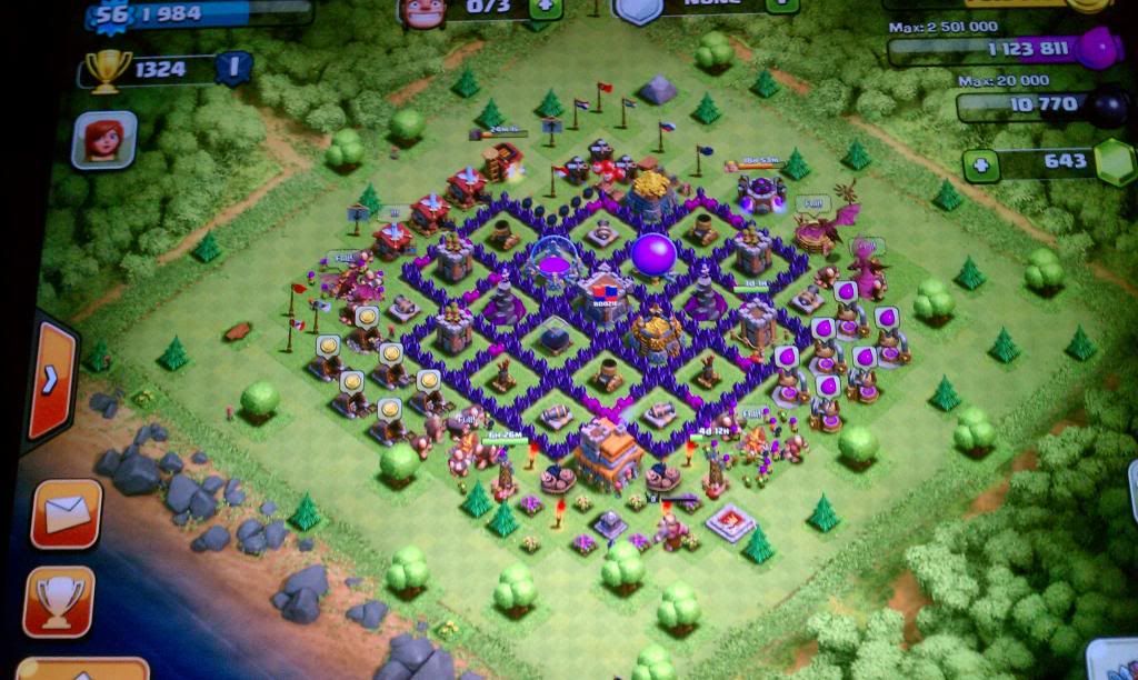 almost going to th8 only missing air defense/mines/collectors everything is maxed, I have not built a dark barrack yet either, bk at level 3 going to 4, all research is done only need lvl 4 balloons. All spells maxed