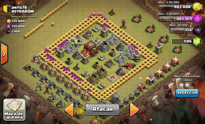 Town Hall 10. You can either use lightning spells to take out one of the AD's or you can just simply use rage spells. Either way, it looks like a solid 2 star if you deploy them right.