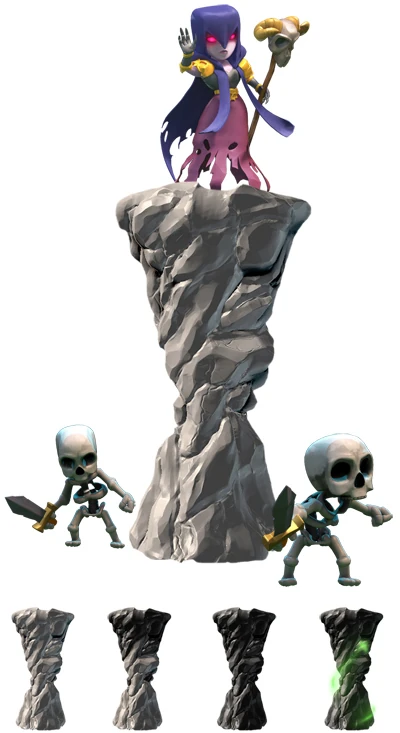 - The Skeletons that are summoned by the Witch Tower are able to jump over walls in order to chase attacking troops.