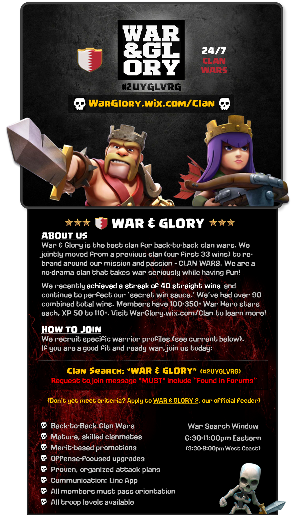 Apply if you're a good fit and want to be part of an awesome war clan! See you soon!