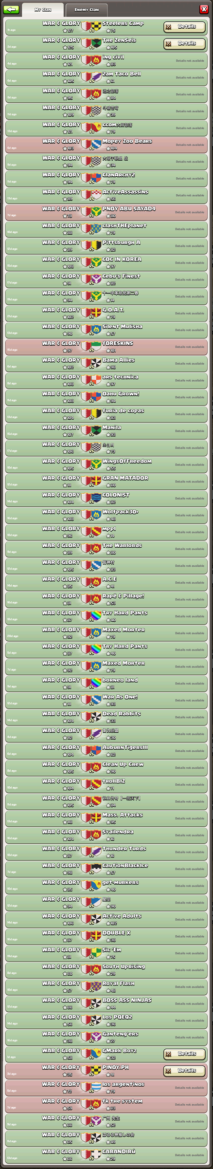 WAR & GLORY is Dedicated to Back-to-back Clan Wars