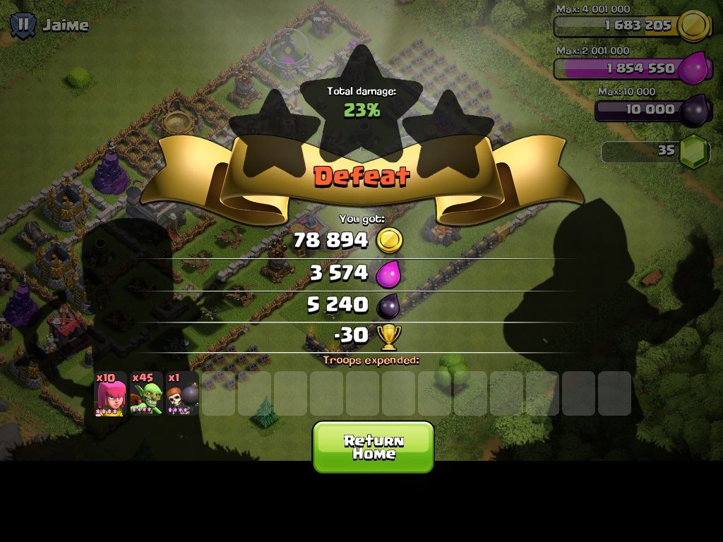 2.6k, the guy was upgrading a wizard tower and moved it out of his base and replaced it with a pekka statue for some reason. 100 DE per goblin felt pretty good