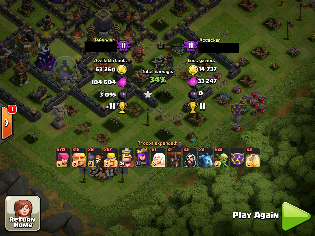 A TH10 hit me with combined 44 hero levels, 16 giants, 4 spells, and level 7 archers. He got like 73% of my base.