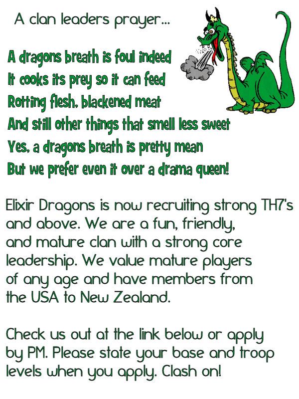 Clan Tag: 228G2U80 www.elixirdragons.enjin.com