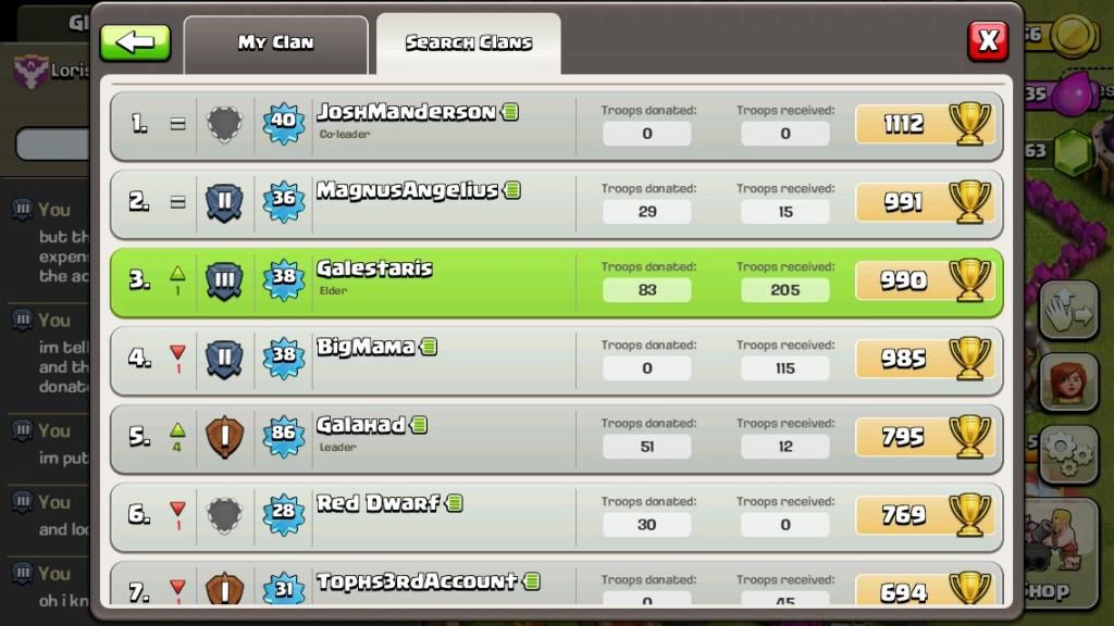 I'm here to tell you about our excellent, very generically-named clan - Loris. We're a small, friendly, active group of players (in our 20s and 30s) looking for others who want to do regular clan wars. In terms of competitiveness and intensity, we're probably middle of the road - we want to pull off some wins, but we're also not going to freak out if we don't win every time. We want people who are willing to put in a bit of effort, but who aren't going to overreact when we have some losses here and there.